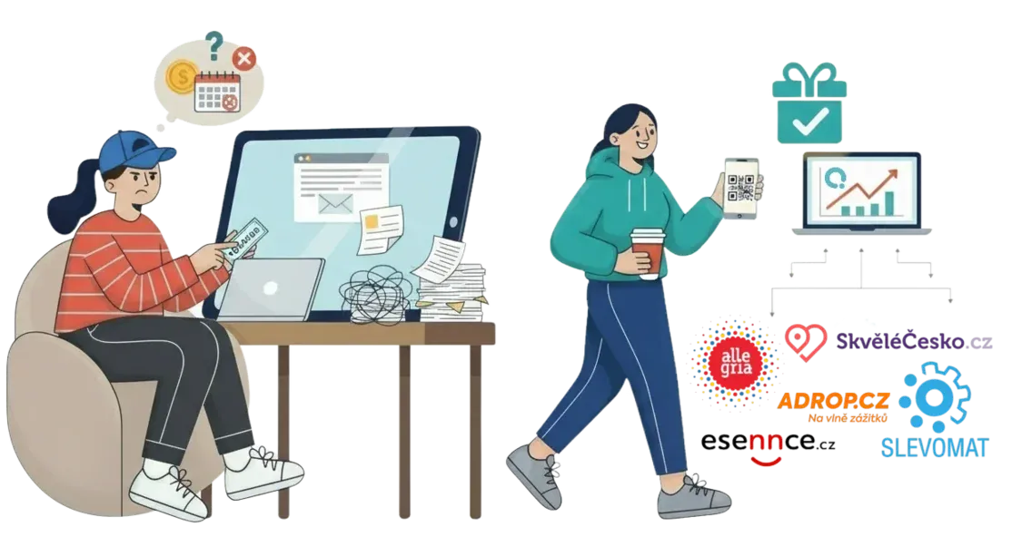 Customers buy a voucher online, receive it by email immediately, and the system tracks validity and redemption.
